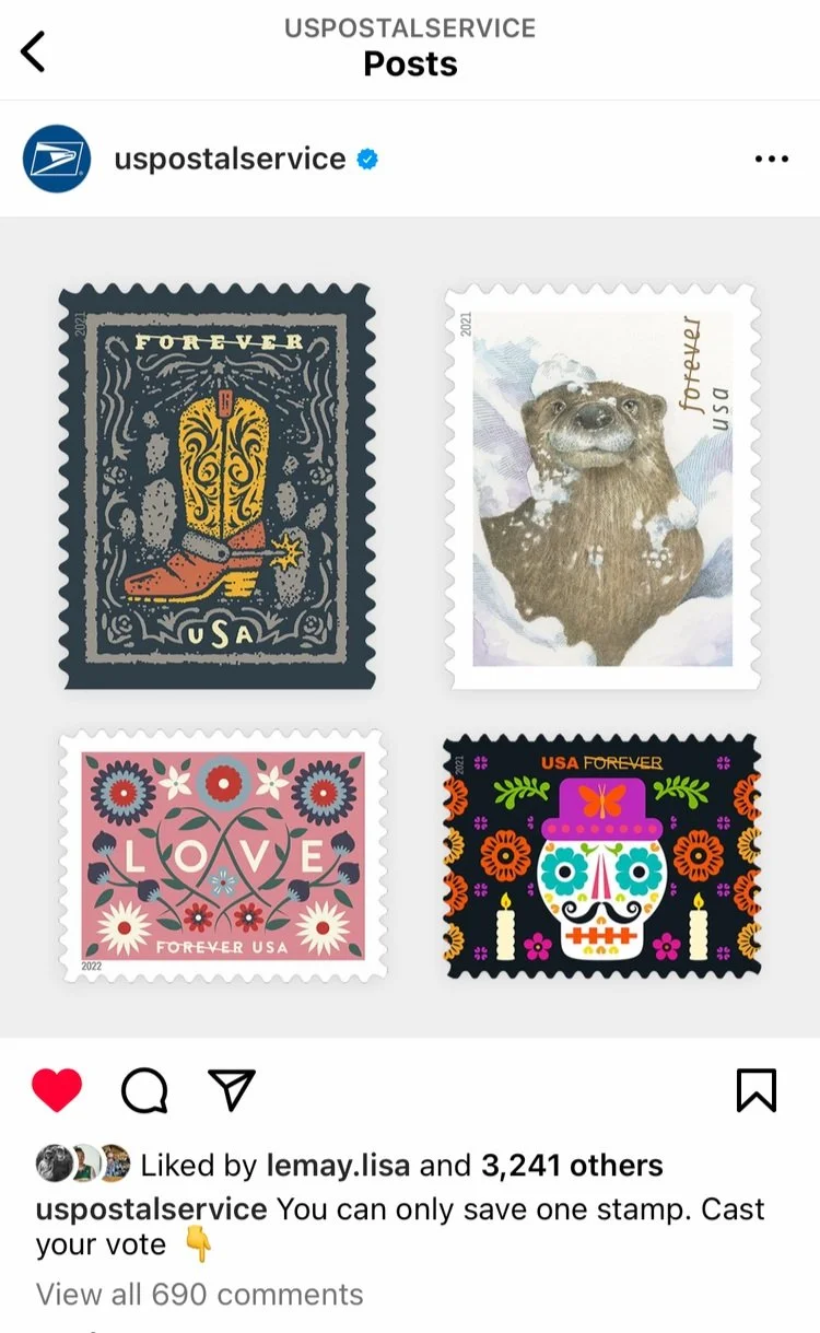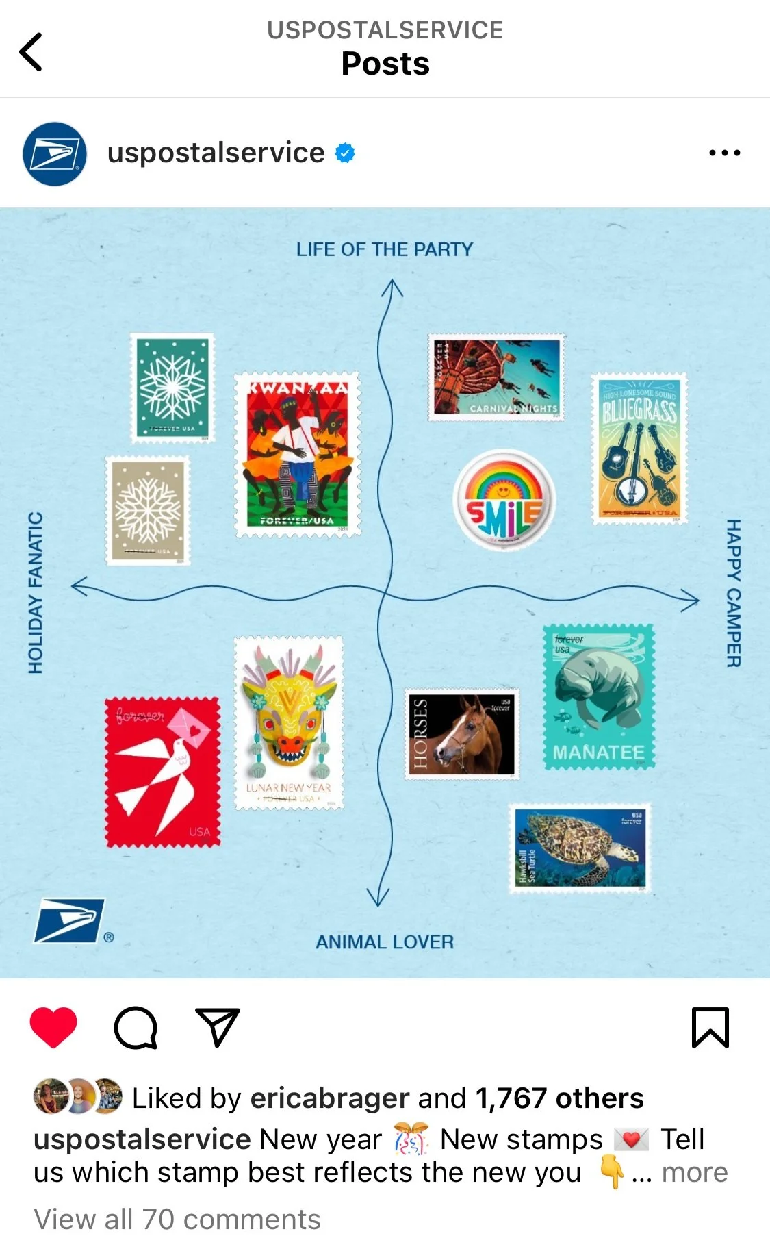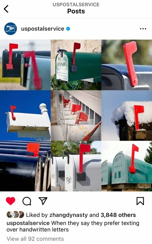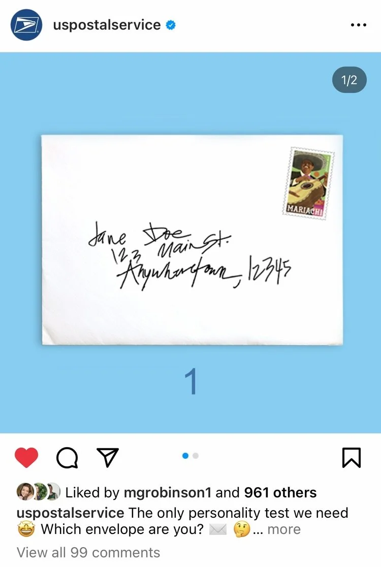 Living out my best Lara Jean Covey dreams by revamping USPS organic social to be more “fetch.”