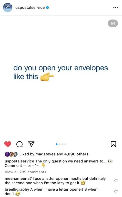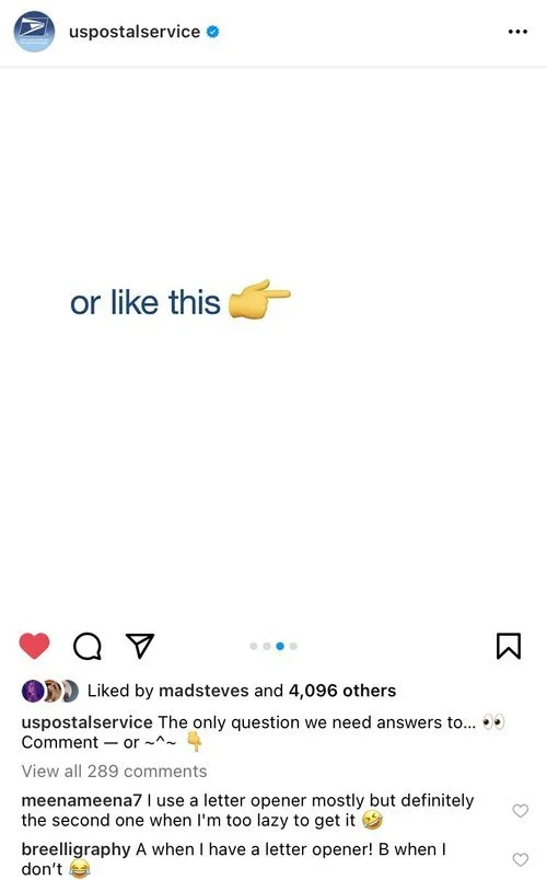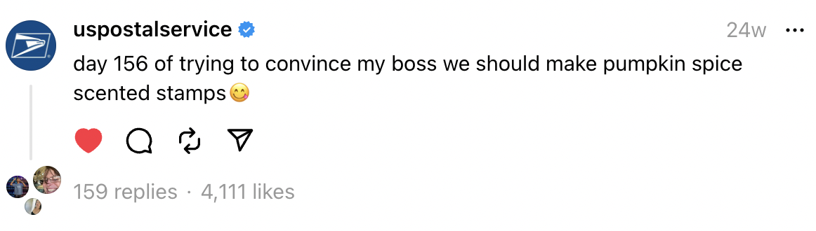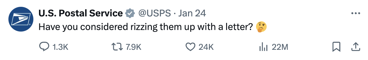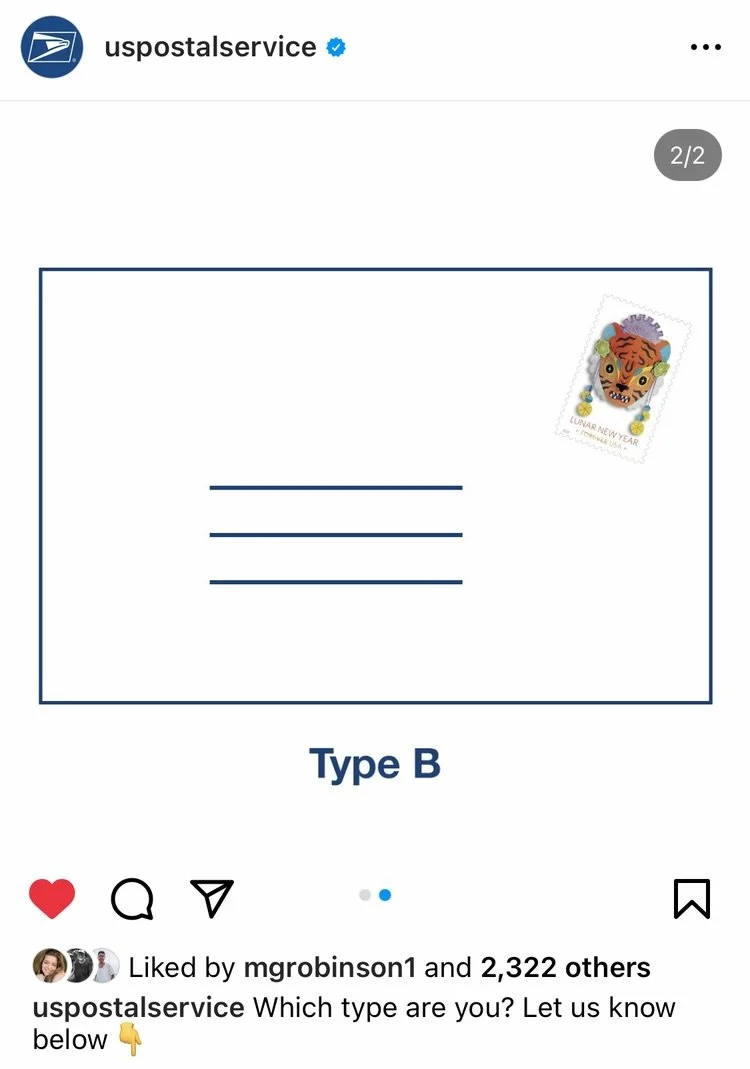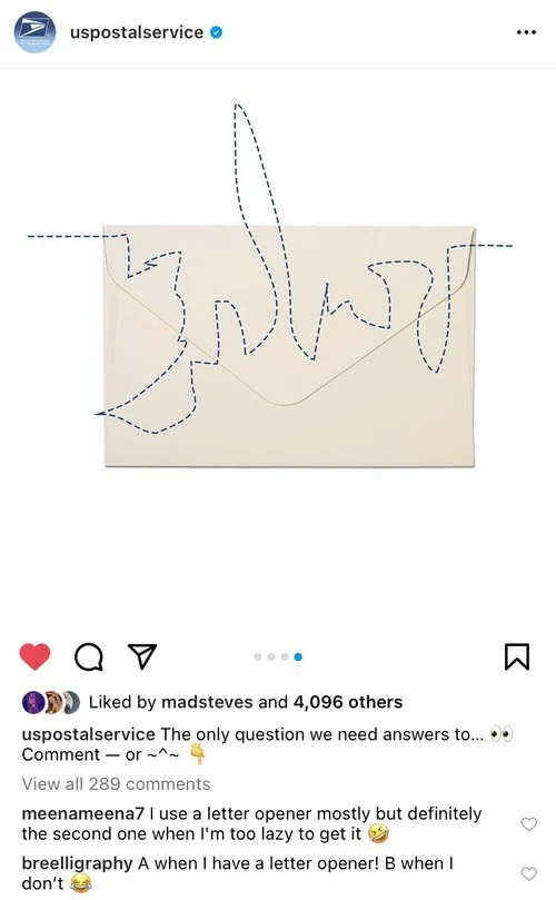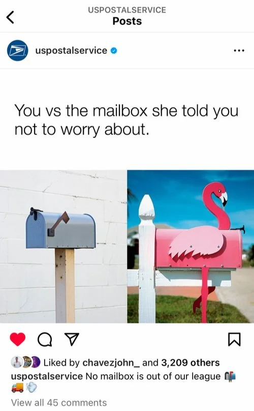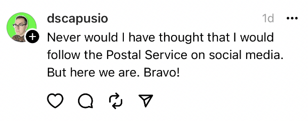 Living out my best Lara Jean Covey dreams by revamping USPS organic social to be more “fetch.”